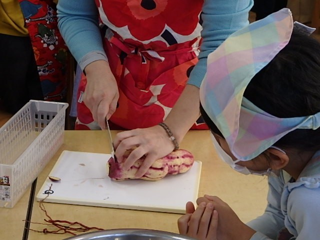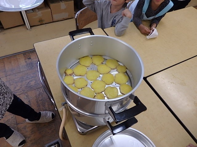 切ったり蒸したりするのは、保護者の方の協力をいただきました。