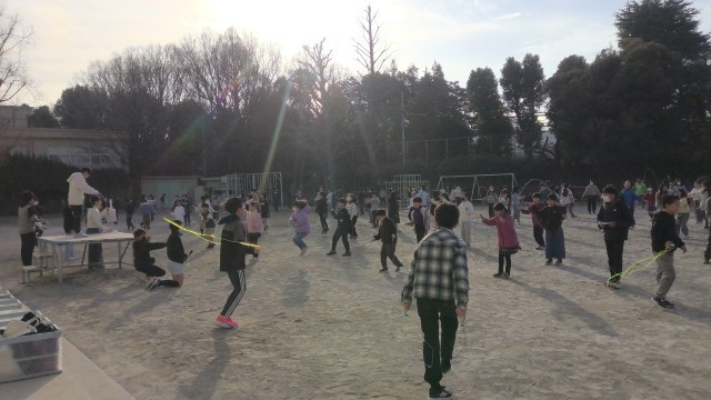 子供たちは自身の技量の向上を目指し、体育や休み時間に競って短なわの練習に励んでいます。