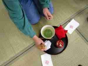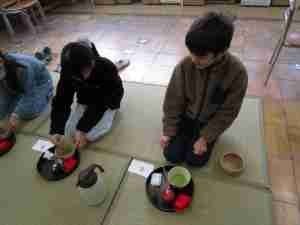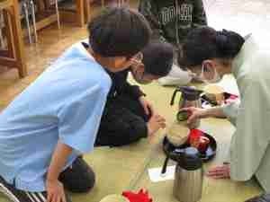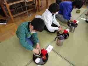 第5学年 茶道体験 公開日 2026/02/19 更新日 2026/02/19 地域協働 総合の学習の一環として、地域の方にご協力をいただき、茶道体験を行いました。茶道の歴史や心得を学んでから、実際にお茶を立てました。袱紗の扱い方に苦戦しながらも、お茶を立てる準備を整え、自分自身でお茶を立てた後、お干菓子とともにいただきました。和の世界を堪能しました。 +2