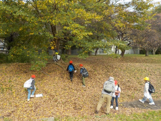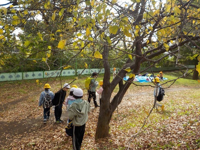 バッタや幼虫、ドングリや紅葉した葉っぱなどいろいろなものを発見をして、秋の自然に親しみました。