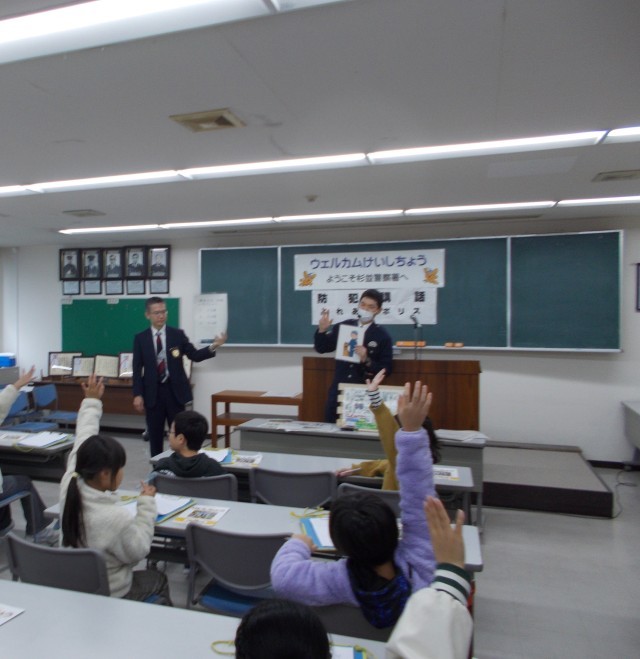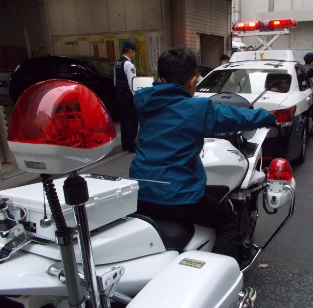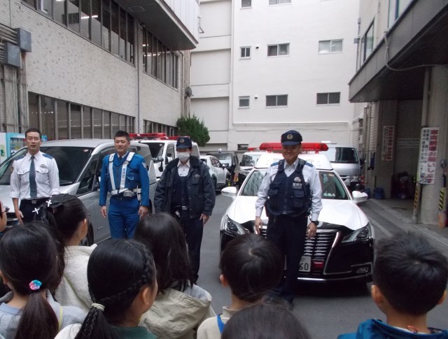 白バイやパトカーに乗せてもらい、パトランプやスピード計測装置など、さまざまな装備があることを確かめました。