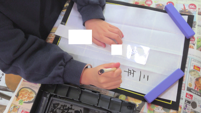 お正月の書初めにむけて、小筆を使って名前を書く練習をしました。