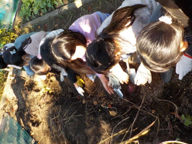 5月に植えたサツマイモが大きくなったので、2年生のみんなでお芋ほりをしました。