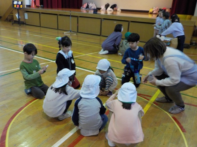 年長さんをご招待して、どんぐりや松ぼっくりを使ったおもちゃで遊びました。