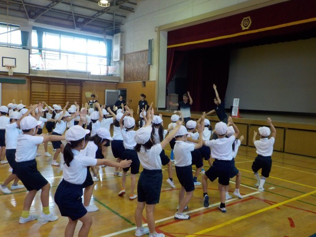 【1年生】阿波踊り練習 公開日 2025/10/03 更新日 2025/10/03 1年生 10月3日金曜日初めての阿波踊り練習がありました。手先や足先の動きにも気を付けて踊ることができました🌟菊水連のみなさん、ありがとうございました。