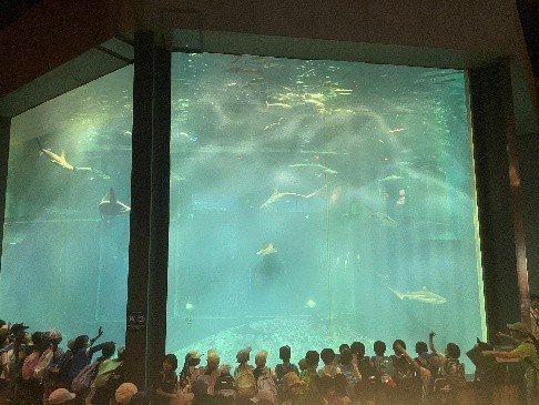 2年 生活科見学 公開日 2025/10/06 更新日 2025/10/09 2年生 10月3日(金)、2年生が生活科見学で葛西臨海水族館へ行ってきました。暑くもなくちょうどよい天候でした。大きな水槽で回遊するマグロやサメに夢中になったり、ラボでの「お寿司のネタの話」に夢中でメモをとったりして、良い学びとなりました。お昼は、公園でゆっくり食べることができました。帰りも混むこともなくバスで時間どおりに帰校しました。