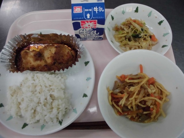 麦ごはん 牛乳 ホキの麦みそ焼き
