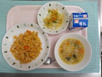 1年生は、今日が初めての給食です。先生の説明をしっかり聞いて、準備や片付けも上手...