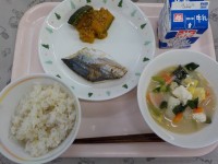牛乳、サンマご飯、ゆかりキャベツ、呉汁