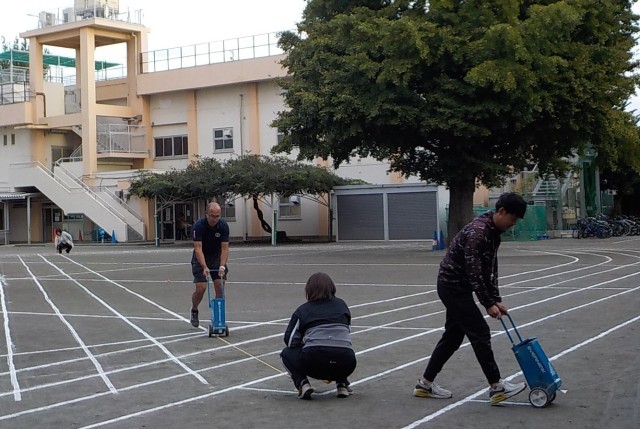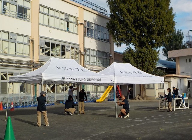 子どもたちが下校した後、主事さんと先生方がテントを張ったり、ラインを引いたりしています。明日はリハーサル、あさってはいよいよ本番です。校庭はキンモクセイの香りが広がっています。秋本番、良い天気になりますように。