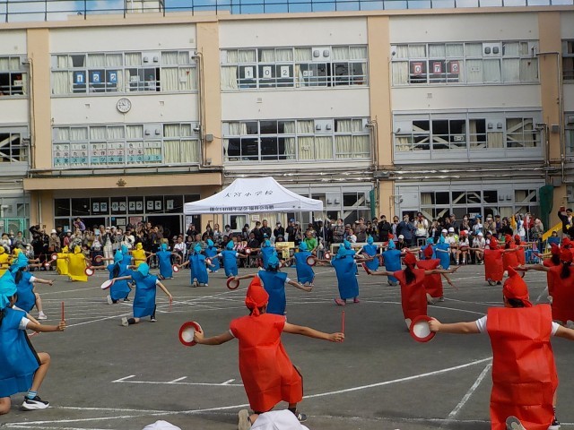 4年生「みんなで力を合わせて心を一つに!」コミカルなダンスとダイナミックなエイサーの組み合わせ。