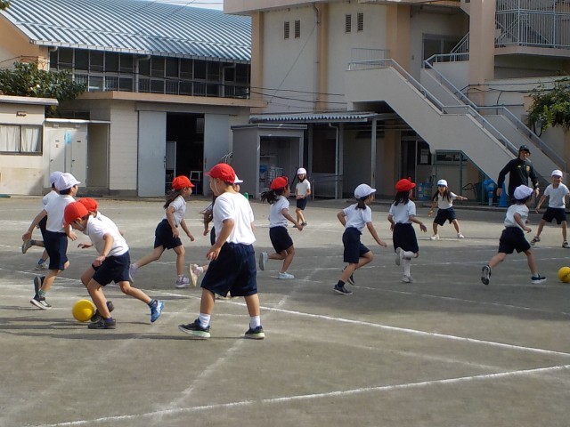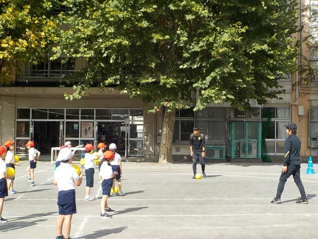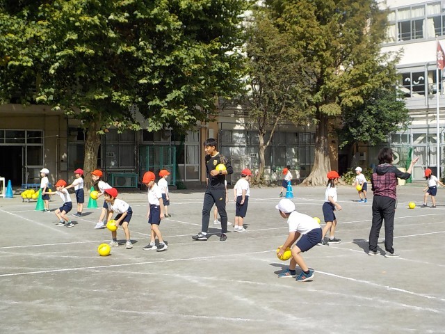 東京FCの選手をお招きして、サッカーを教えていただきました。ボールをキャッチしたり転がしたり慣れてから、ボールを蹴ったり止めたりしました。そしていよいよゲームになり、子どもたちは元気いっぱいボールを追いかけていました。