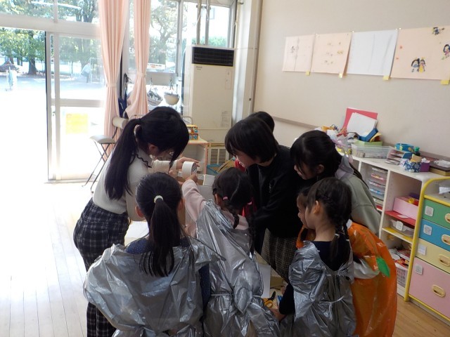 総合的な学習の時間で「小さな願いに寄り添うわたしたち」に取り組んでいます。クラスごとに、保育園やこども園を訪問し、お兄さん・お姉さんらしいやさしさを発揮する大事な任務をもって、小さい子供たちと一緒に遊びました。5年生の子どもたちも、小さな子供たちと同じように笑顔いっぱいでした。
