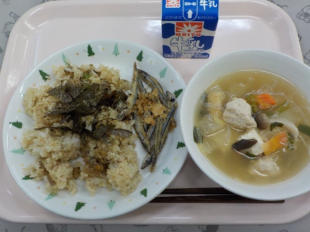 今日は、アサリ、ごぼう、油揚げをご飯に混ぜた「深川めし」です。