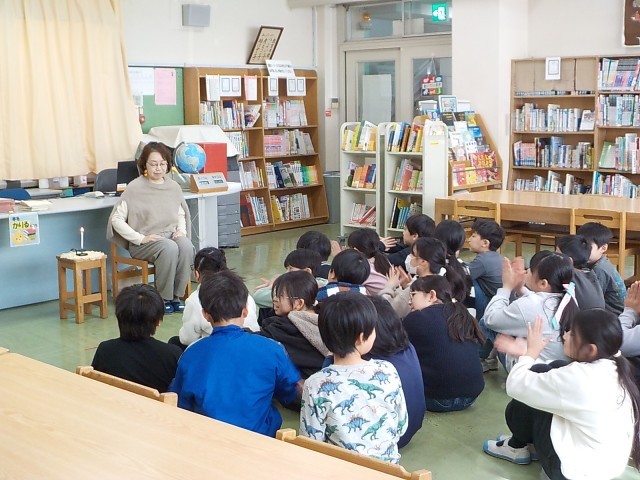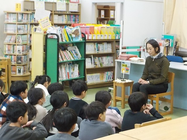 後期読書週間では、おはなしパンプキンの方々が全学年全クラスでおはなしを語りかけてくださいます。今日は4年生、ろうそくの火が灯されると、子供たちはイメージを膨らませながらじっくりと聴き入り、おはなしの世界を楽しみました。