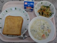 牛乳、きな粉豆乳トースト、ベジタブルシチュー、大根サラダ今日は、豆乳ときな粉と砂...