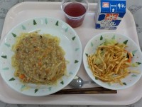 牛乳、もやしチャーハン、白菜スープ、ガマくんのクッキー2月9日~20日は大宮小学...