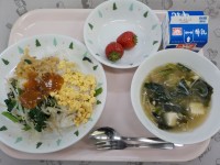 牛乳、ビビンバ、はるさめとわかめのスープ、いちご 大宮小学校の「ビビンパ」の具は...