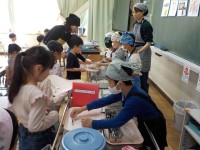 1年生は、今日が初めての給食です。先生の説明をしっかり聞いて、準備や片付けも上手...