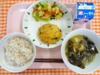 2月5日(木)の給食 公開日 2026/02/05 更新日 2026/02/05 泉南中学校の給食 菜の花チャーハン、魚の包み揚げ、わかめスープ、牛乳今日は旬の菜の花をつかって『菜の花チャーハン』をつくりました。炒り卵は菜の花の黄色い花をイメージしています。