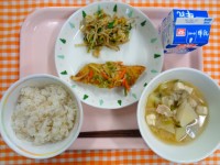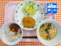 カレーライス、じゃこサラダ、オレンジゼリー、牛乳