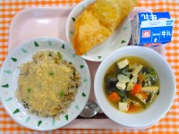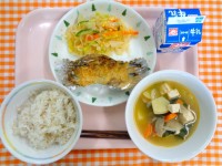 4月17日(金)の給食 公開日 2026/04/21 更新日 2026/04/21 泉南中学校の給食 筍ごはん、いかのかりん揚げ、沢煮椀、米粉抹茶ケーキ、牛乳今が旬のたけのこを使って『筍ごはん』をつくりました。
