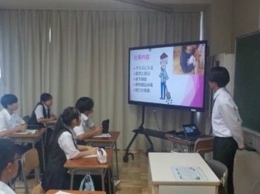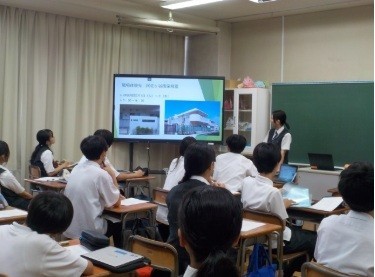 2年生が7月に行った職場体験の報告会を行いました。自分が体験した内容や体験先で学んだことなどをスライドにまとめて発表しました。実際に仕事の現場で働くことで、働くことの大切さに気付けたようです。