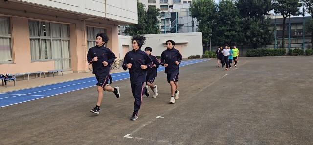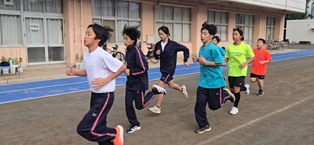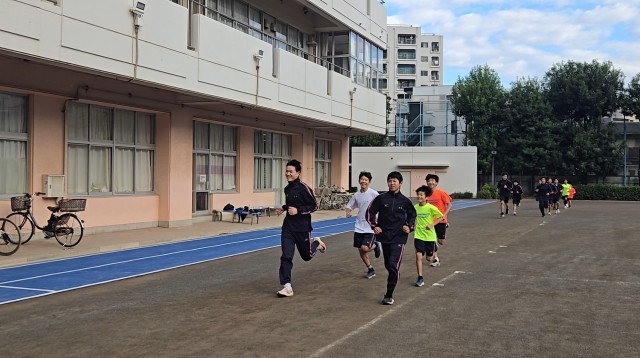 杉並区中学校対抗駅伝2025の練習が本日から始まりました。30名の候補生徒がメンバー入りを目指して、練習を積んでいます。本日は集団で走る練習を行いました。