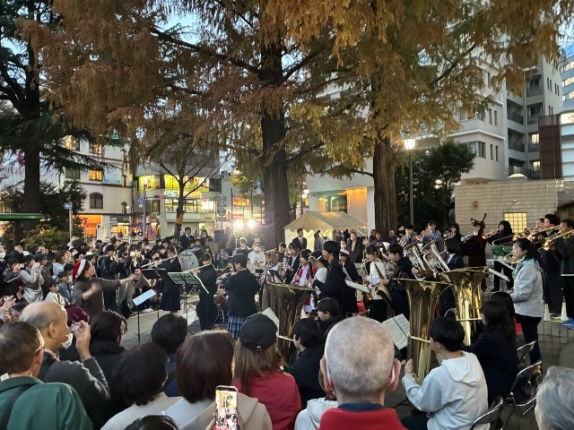 阿佐中吹奏楽部と杉森中の合同演奏でイベントがスタートしました。大勢の観衆が集まり、力強い演奏を披露して会場を盛り上げました。