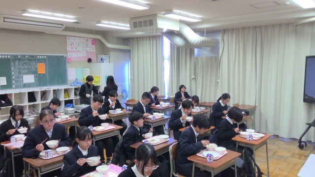 みんなで協力して準備をして、久々の給食を美味しくいただきました。