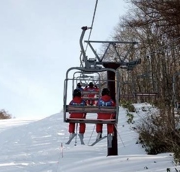 菅平スキー移動教室⑤ 公開日 2026/01/15 更新日 2026/01/15 2年生 リフトに乗ってゲレンデに向かう班や班の中でも個別に教えてもらったり、恵まれた天候の中、楽しく真剣にスキー実習に取り組んでいます。