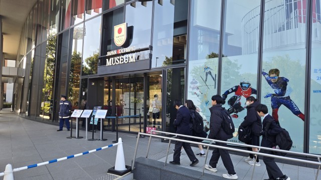 入口前の地面には日本人初の金メダリストの三段跳の記録が刻まれており、その距離に驚いていました。