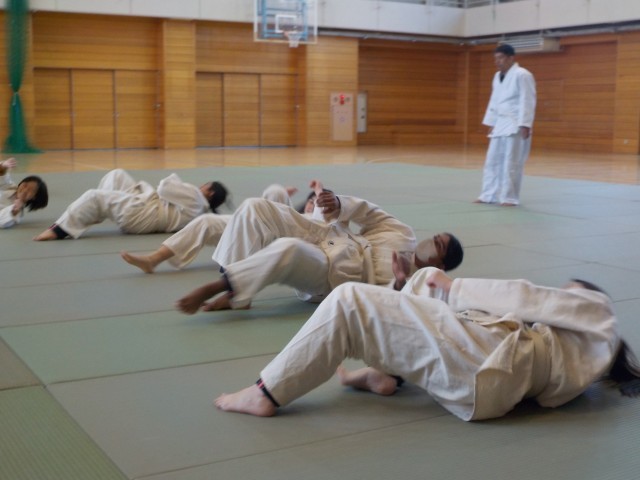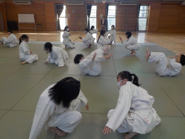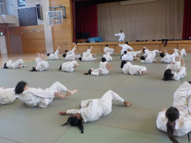 生徒は安全に注意しながら、畳の上で受け身を取る練習を中心に楽しみながら、授業を受けていました。