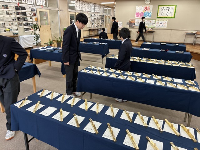 今日から3月7日(土)まで学校公開を兼ねた文化発表会展示部門がスタートしています。生徒の日頃の学習の作品展です。