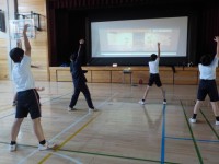 柔道の授業2回目の様子です。お互い手で押し合って受け身を取る練習や柔道独特の動き...