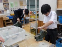 技術の授業にて文鎮製作中