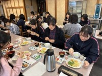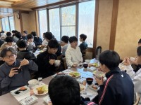 午前中は暖かく快晴の中、充実したスキー実習ができました。お昼ご飯は宿舎『山光館』...