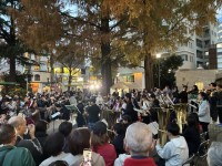 阿佐中吹奏楽部と杉森中の合同演奏でイベントがスタートしました。大勢の観衆が集まり...