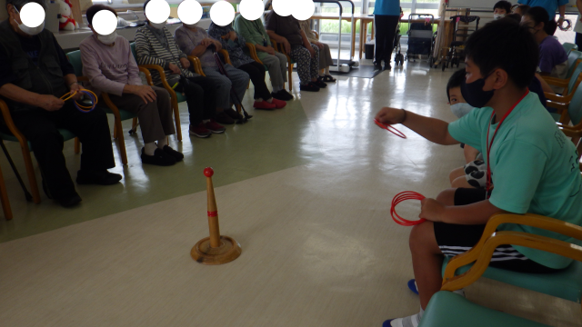 続いて特養のエリアにもお邪魔し、「あくしゅでこんにちは」の曲に合わせて握手をしました。児童たちとの交流に、涙ぐみながら喜んでくださる方もいて、子どもたちにとっても心に残る時間となりました。