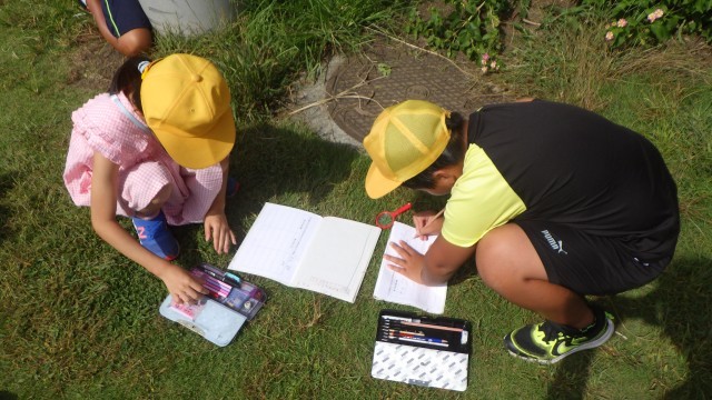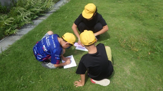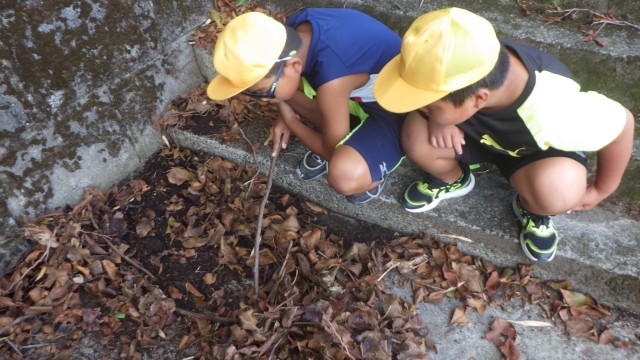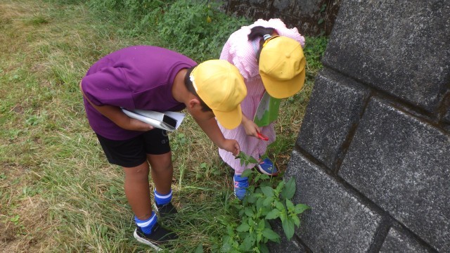 今日は校庭に出て、昆虫のすみか探しを行いました。