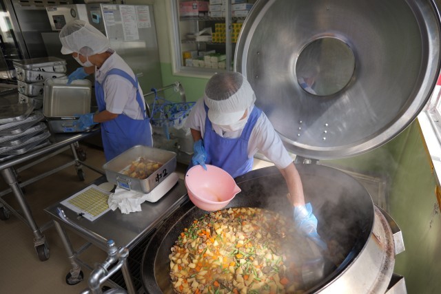 今日のメインである肉じゃがは、食材の形を残すために予熱を考慮して調理を行いました。味の染みた人参やじゃがいもがご飯によく合い、鰹だしの風味も感じられる人気のメニューでした。具だくさんであったのも魅力の1つでした。
