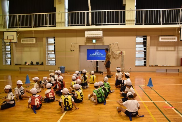 1・2年生の体育「たからはこびおに」の学習では、ゲームを行う前に、作戦を考えました。