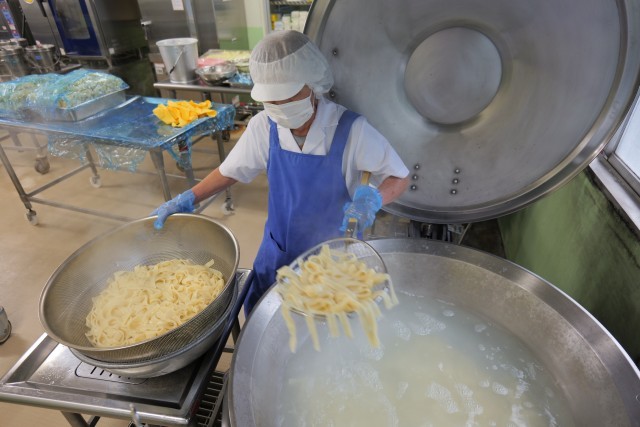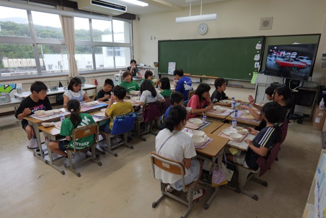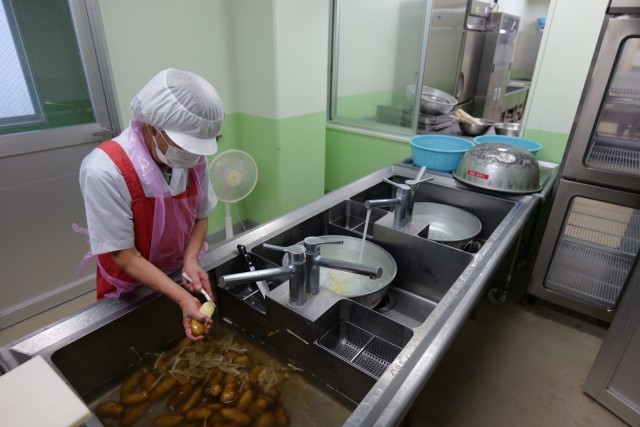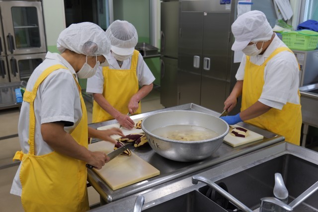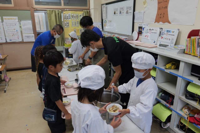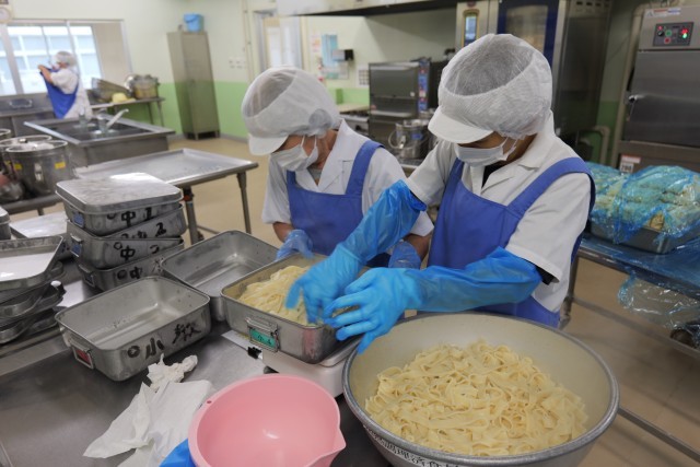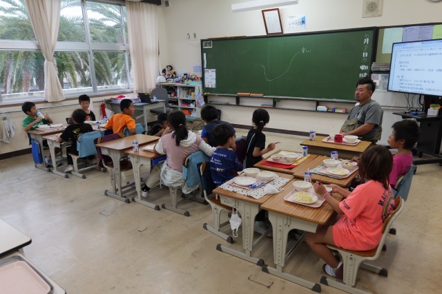 今日は、麺が主食の給食でした。おきりこみに使用した平打ち麺は弾力があり、食感が非常に好評でした。昆布と鰹の旨味が溶け込んだスープも麺との相性が良く、具だくさんなメニューでした。本日使用した三宅島産の食材は、里芋とじゃが芋でした。