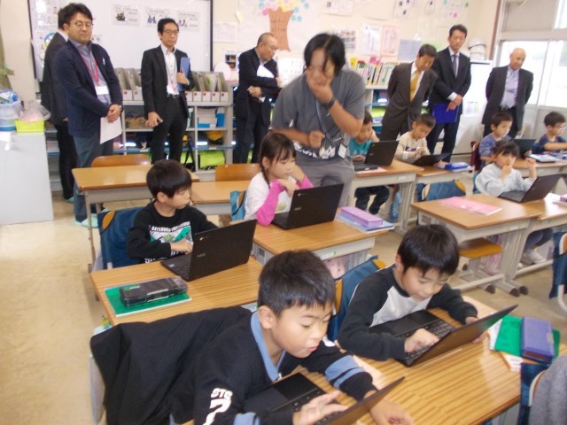 今日は、4校時から給食の時間まで、教育委員会や教育委員の方々が学校の様子を見に来られました。