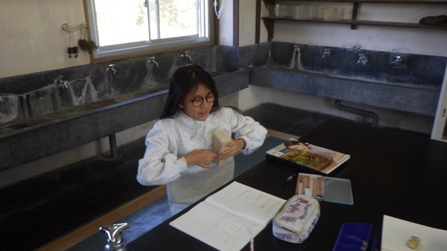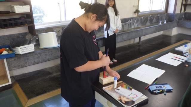 木材に釘を打ち込み、釘を抜く体験をしました。