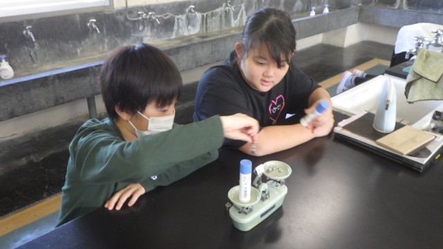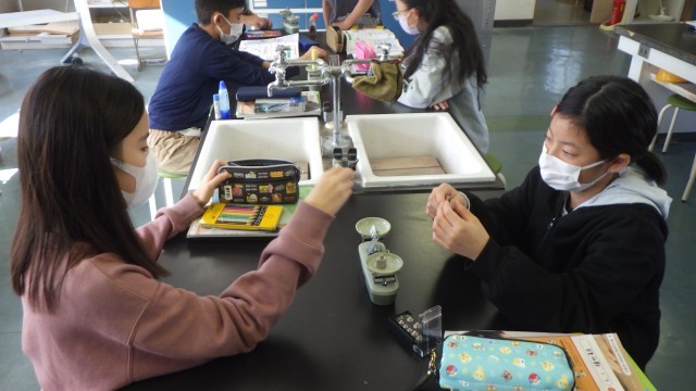 また、上皿てんびんを使って身近な物の重さを計測しました。