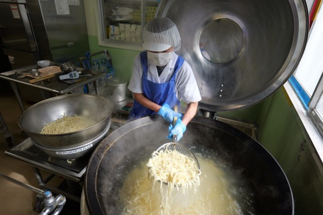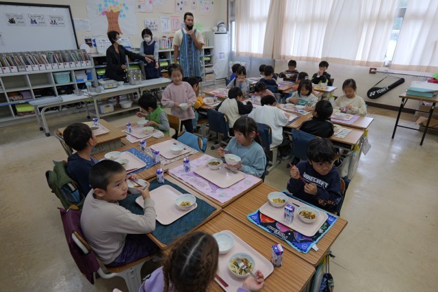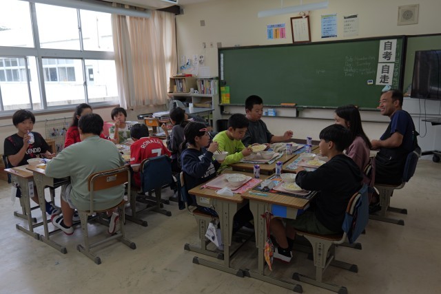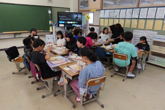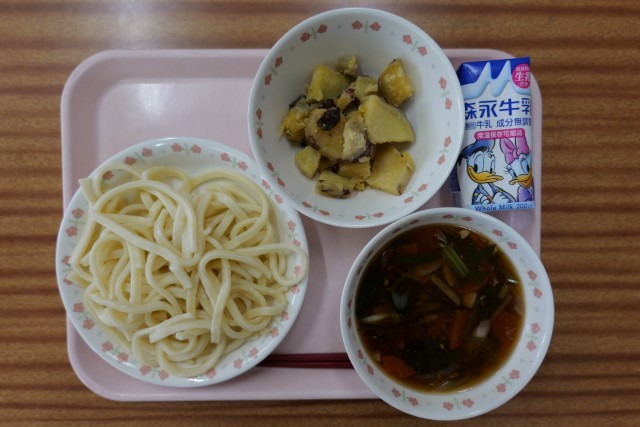 今日は今年度5回目の訪問給食でした。ふだん学級担任の先生と食べていますが、今回も異なる先生と共に食事や会話を楽しみました。あんかけうどんは、鯖と昆布の出汁を使用したうま味たっぷりのスープとコシのあるうどんの相性が良いメニューでした。最後に片栗粉でとろみをつけることで、熱が逃げにくくなり、とても温かいスープが味わえました。
