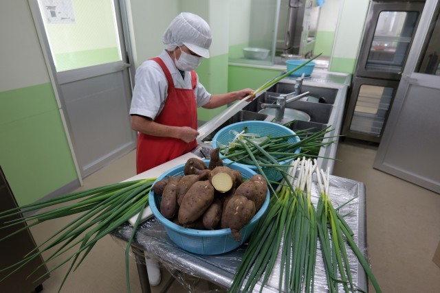 さつまいものはちみつレモン煮には、「紅あずま」という品種の芋を使用し、ホクホクとした食感と、はちみつレモンの甘酸っぱさがクセになるメニューでした。本日使用した三宅島産の食材は、キメジ・さつまいも・ねぎでした。