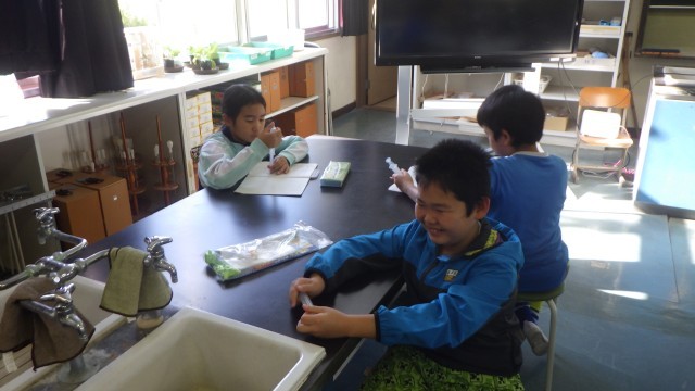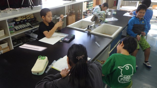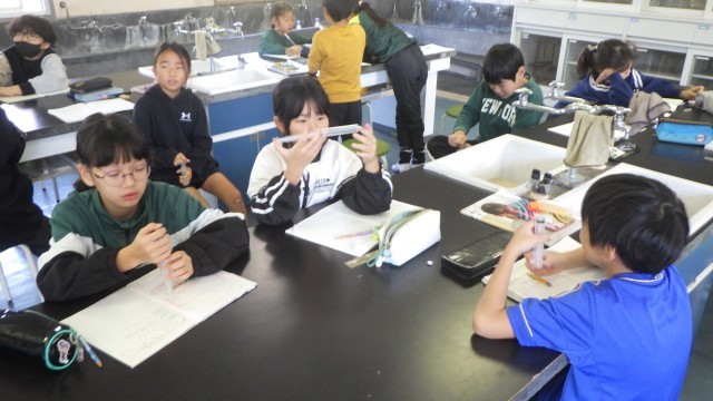 今日は、「中の空気の体積が小さくなると、押し返す力は強くなるのか?」を確かめる実験をしました。