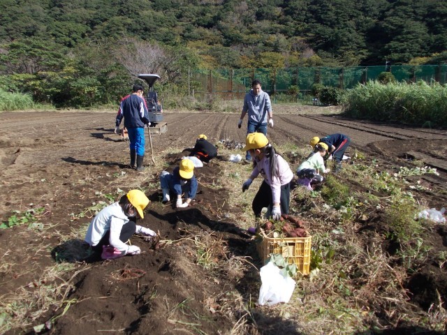 2年生は、生活科の学習で、三宅高等校に以前、苗付けをしたサツマイモを堀りに出かけました。5月の苗付け以来の訪問です。